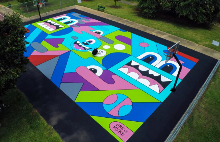 Originaire du Connecticut, Mike a trouvé son élan créatif à Atlanta, une ville où sa vision artistique s’est nourrie de l’intersection entre le design, la culture urbaine, le graffiti et le skateboard. Ses voyages réguliers à New York ont renforcé ce parcours, en lui révélant la force brute de l’art urbain et son impact sur l’espace public. Ces expériences ont forgé les bases de son approche, où les frontières entre l’art contemporain et l’art de rue s’effacent, transformant la ville en son propre terrain d’expression.
