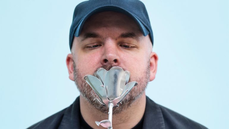 Ici, les fleurs s’ouvrent en visages et les corolles se métamorphosent en corps, quelque part entre humour et tendresse. Les œuvres portent la théâtralité et la sensibilité camp pour lesquelles Baldock est reconnu : ludiques, expressives, elles ne sont jamais tout à fait ce qu’elles semblent être au premier regard.